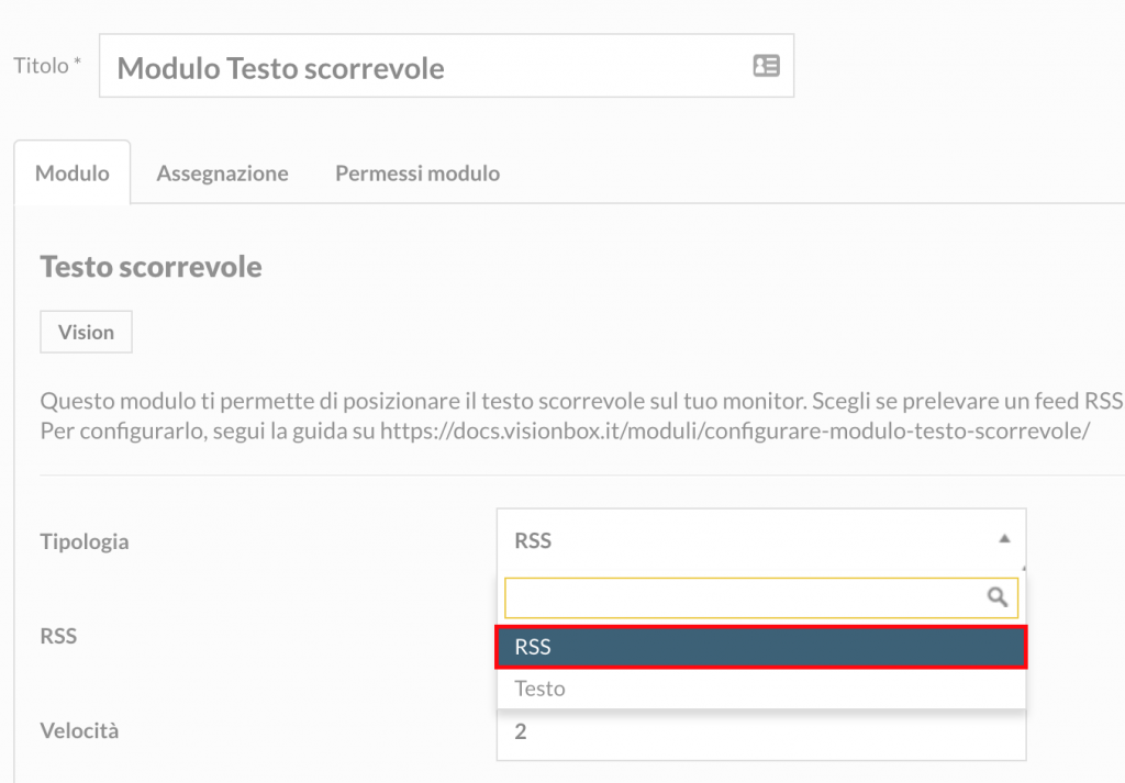 Seleziona alla voce Tipologia l’opzione Feed RSS (da URL).
