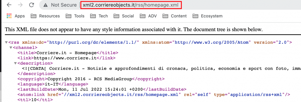 - Categoria di notizie tra quelle disponibili sul Rss del Corriere della Sera